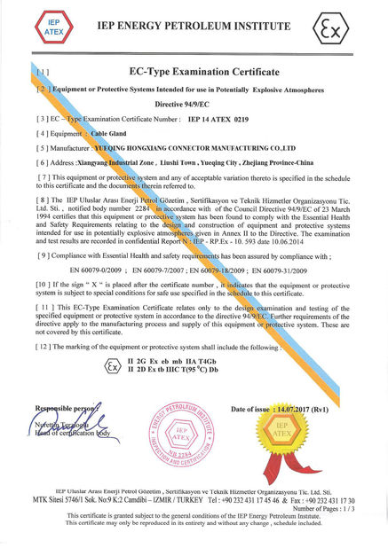 Actualmente, tenemos CE, ROHS, ALCANCE, TUV, ATEX, IP68, aprobaciones para nuestros artículos. Como perfecto la artesanía, la calidad excelente y el precio competitivo, artículos de Hongxiang hacen una alta reputación en mercado nacional e internacional.
